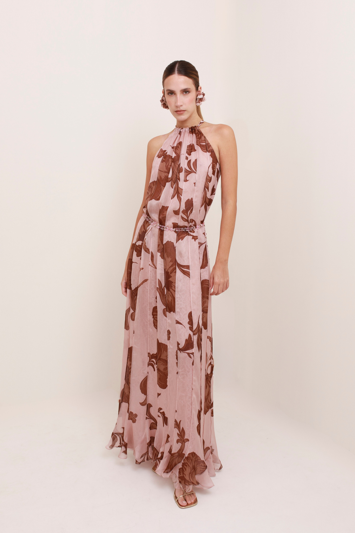 The Ivy Dress floats with ease in a fluid halter-neck silhouette, crafted in our signature print. Its lightweight fabric and airy shape make it an elegant choice for daytime events or evening affairs.