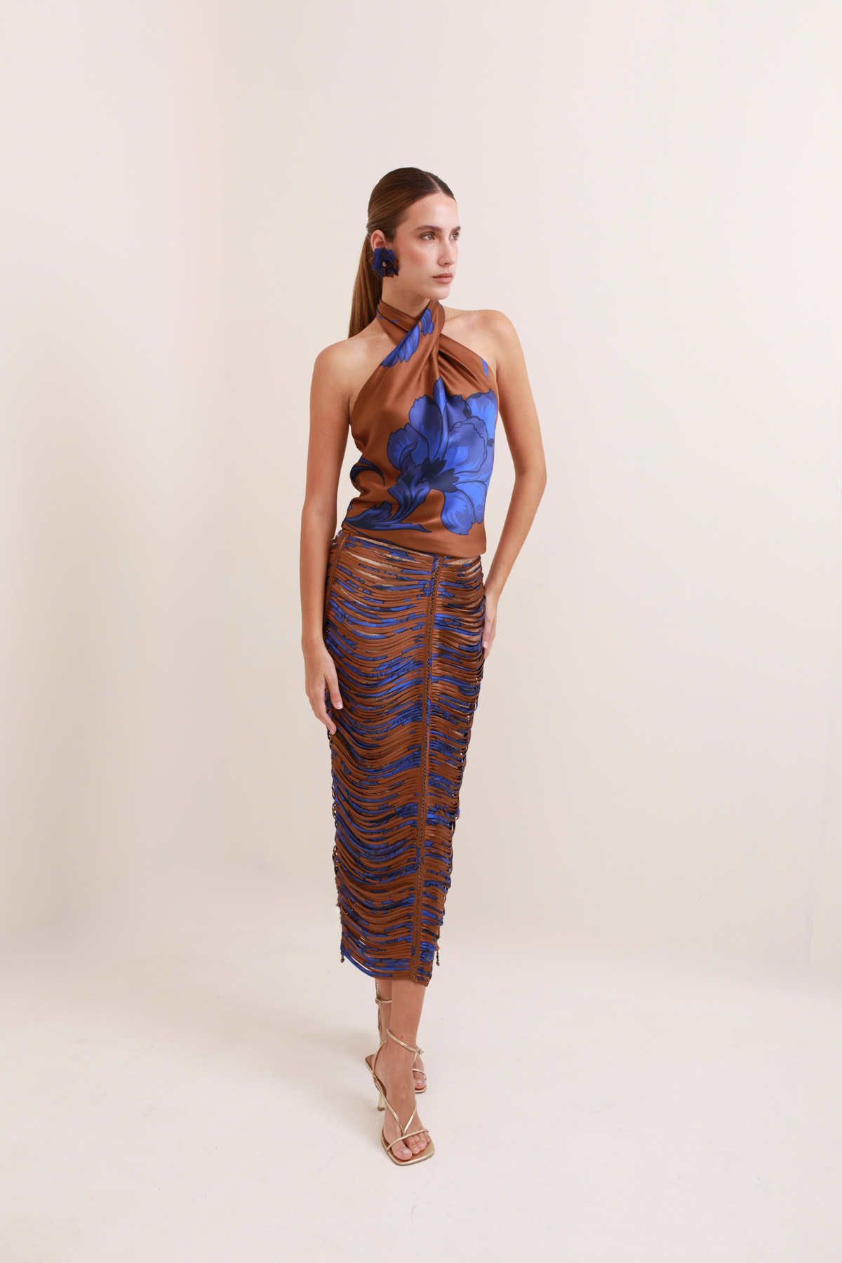 The definition of elegance, the Danielle Maxi Skirt in this floral print is a lifetime piece. Made entirely by hand, the piece combines 100% silk and artisanal craft to create this versatile yet unique piece.