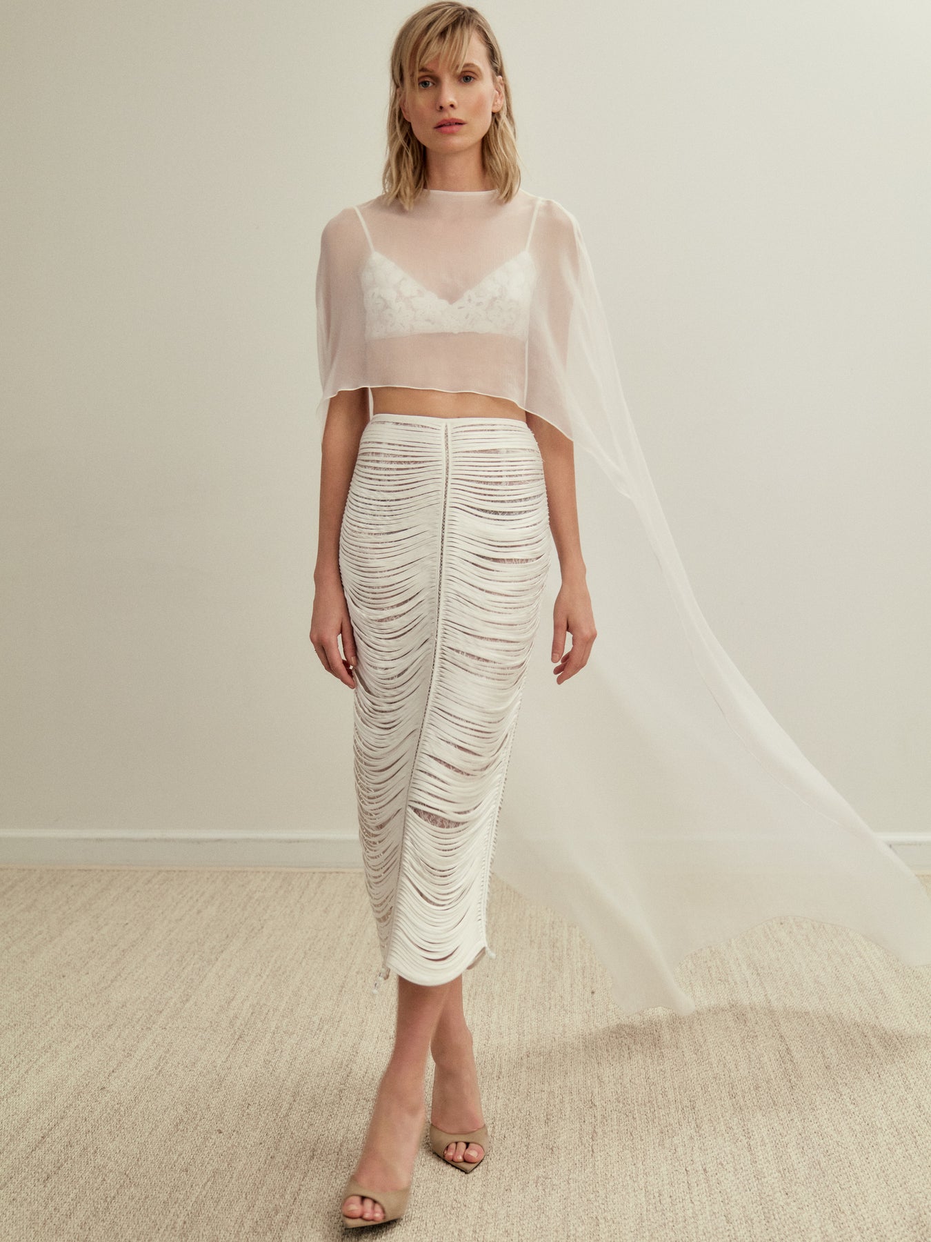 The definition of elegance, the Danielle White Skirt is a lifetime piece. Made entirely by hand, the piece combines 100% silk and artisanal craft to create this versatile yet unique piece.